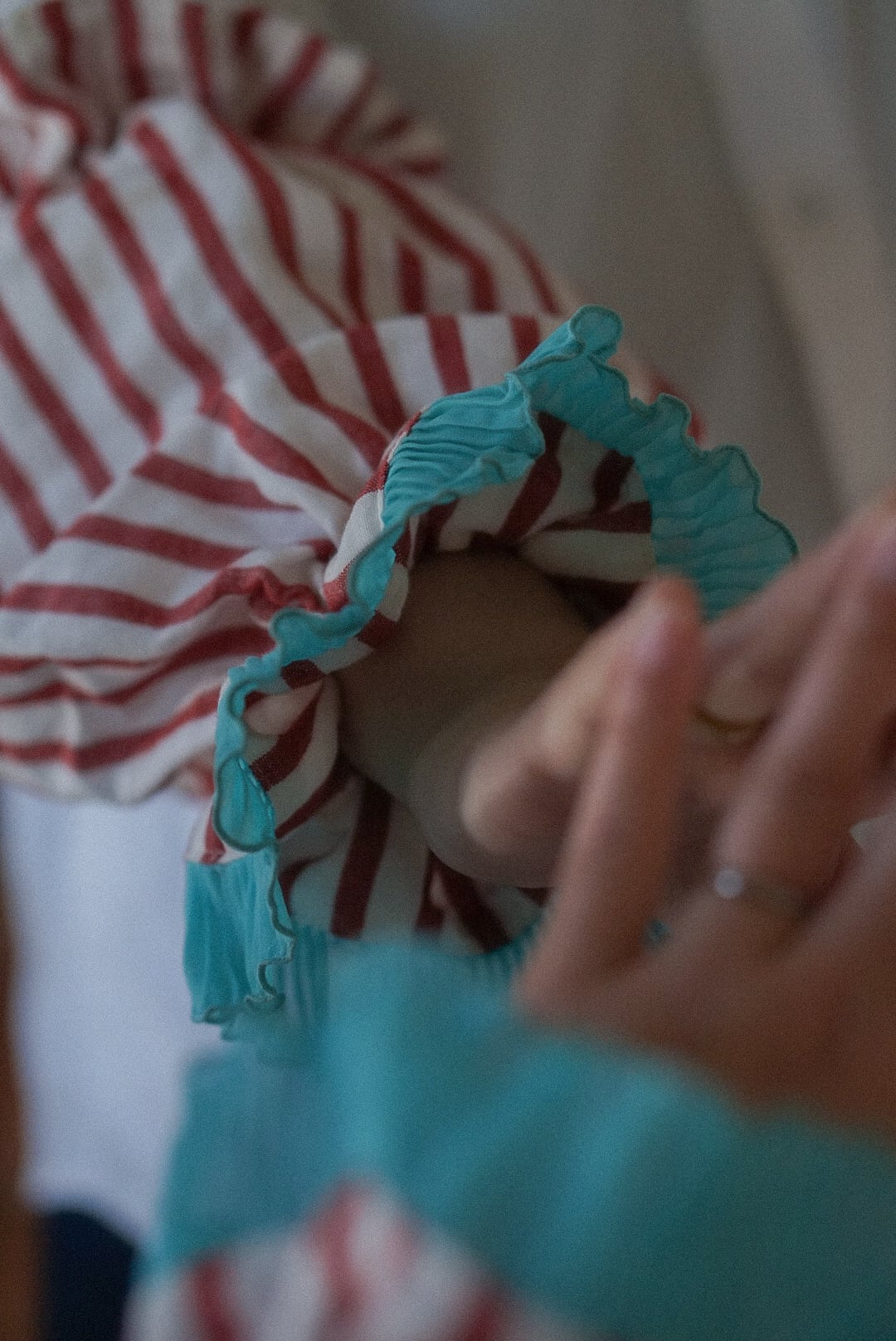 プリーツフリルの風合いを損なわないよう、