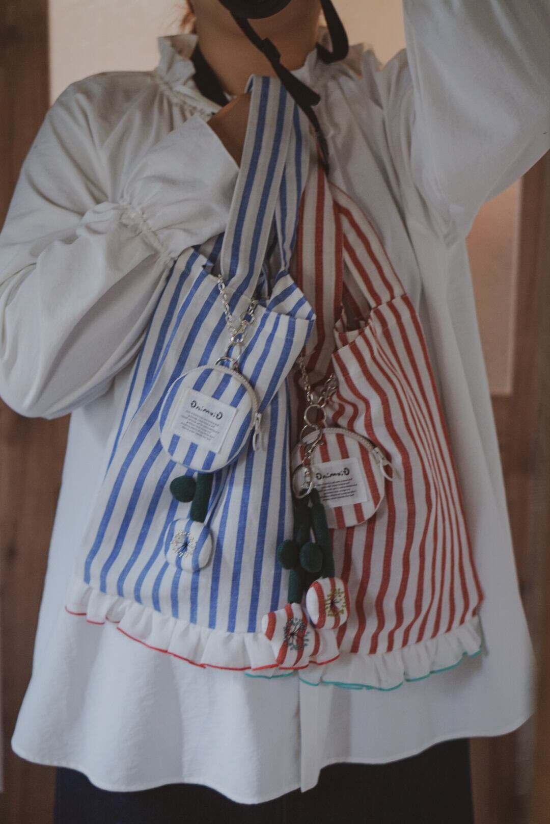いつものストライプおでかけセット|マルシェバッグ&巾着ポーチ