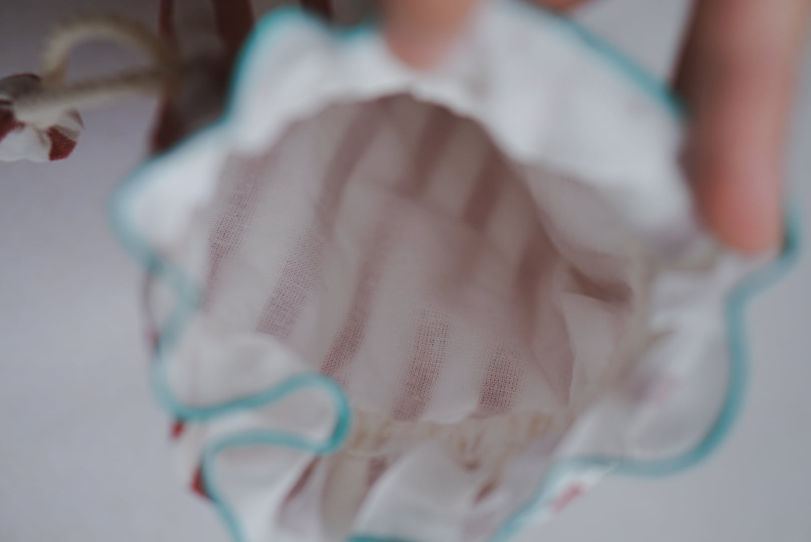 ・巾着ポーチは裏地付きで、しっかりとしたつくり