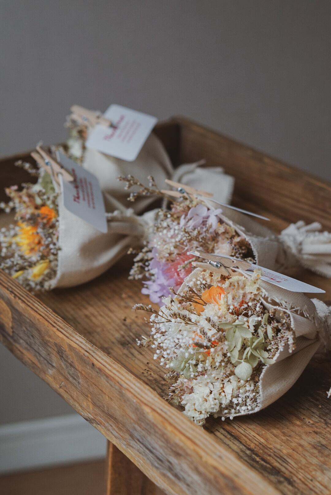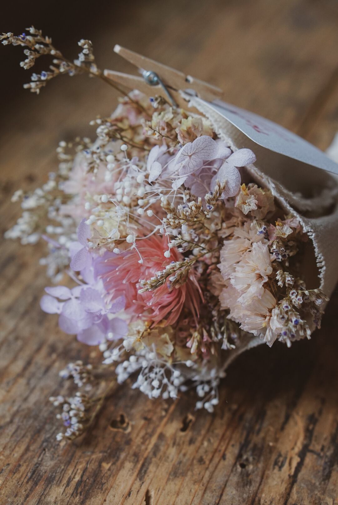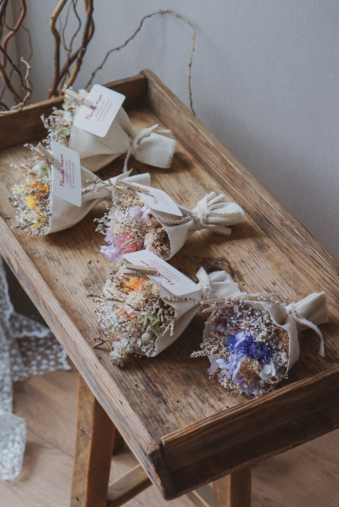小さなドライフラワーのブーケをご用意しました。