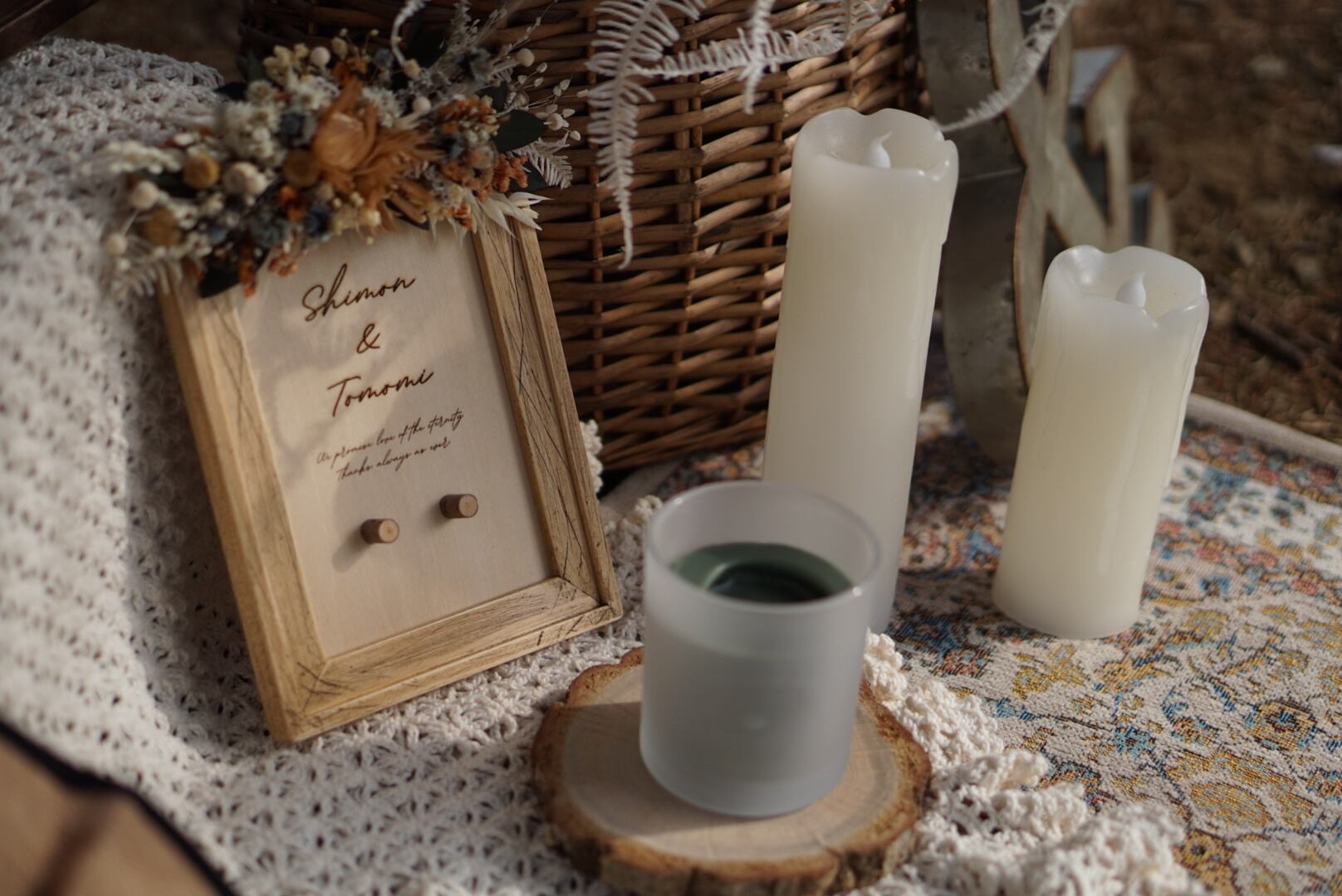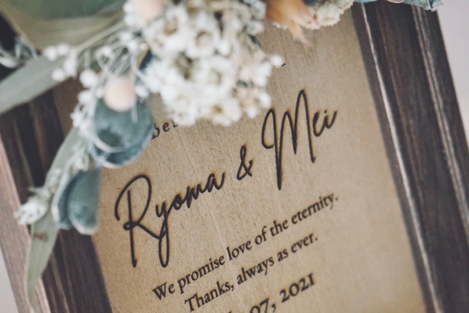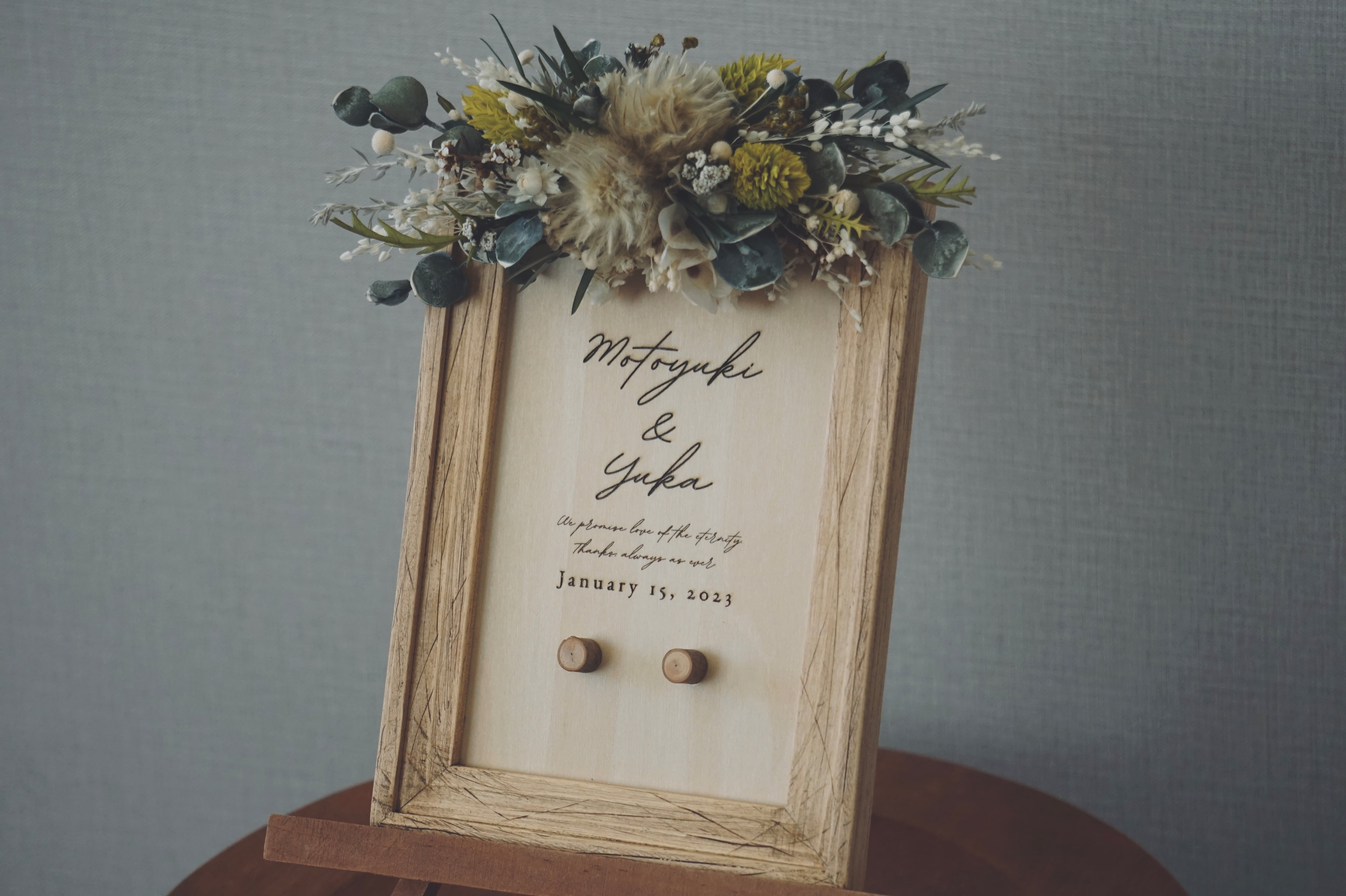 裏にはスタンドと吊り金具をお付けしてるので、挙式ではスタンド、挙式後はインテリアとして壁掛けにするなど使い分けができます。