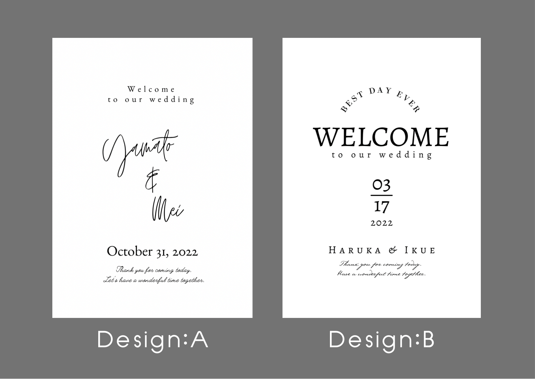 フォントデザインは2種類、フレームカラーは2色からお選びいただけます。
